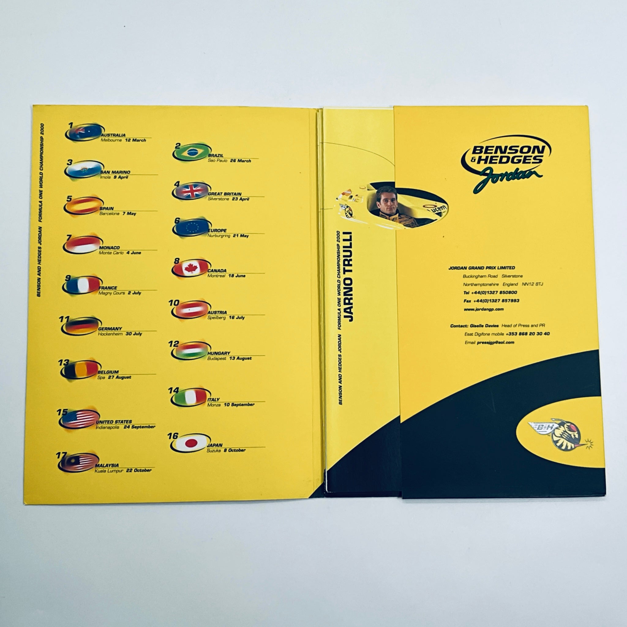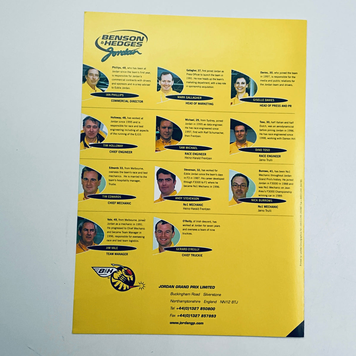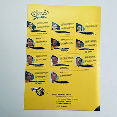 2000 Benson& Hedges Jordan Grand Prix F1 Team Media Back