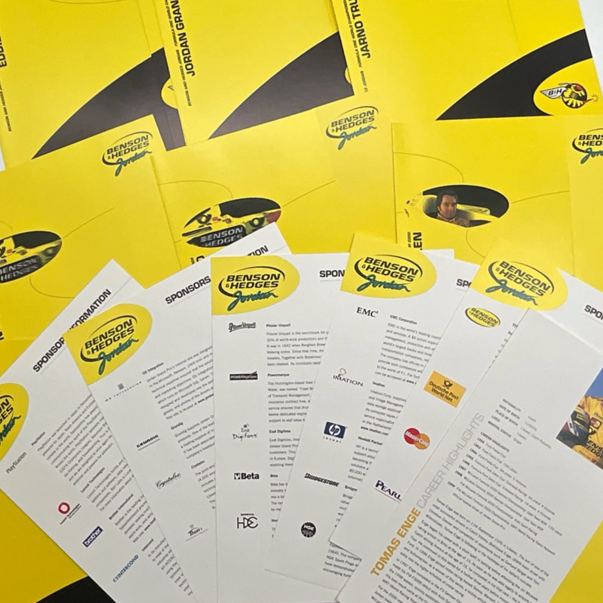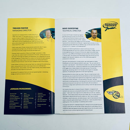 Discover this exceptional 2000 Benson & Hedges Jordan Grand Prix F1 Team Media Pack—a genuine piece of motorsport history. Presented in pristine condition, this collectible features over 15 vibrant pages showcasing comprehensive details about the legendary Jordan team, its drivers, the iconic car, and the 2000 FIA F1 World Championship season. Housed in an official presentation folder, this rare memorabilia captures one of Formula 1's most celebrated outfits during a pivotal era. A must-have for serious F1 enthusiasts and collectors seeking authentic period documentation from the sport's golden age.