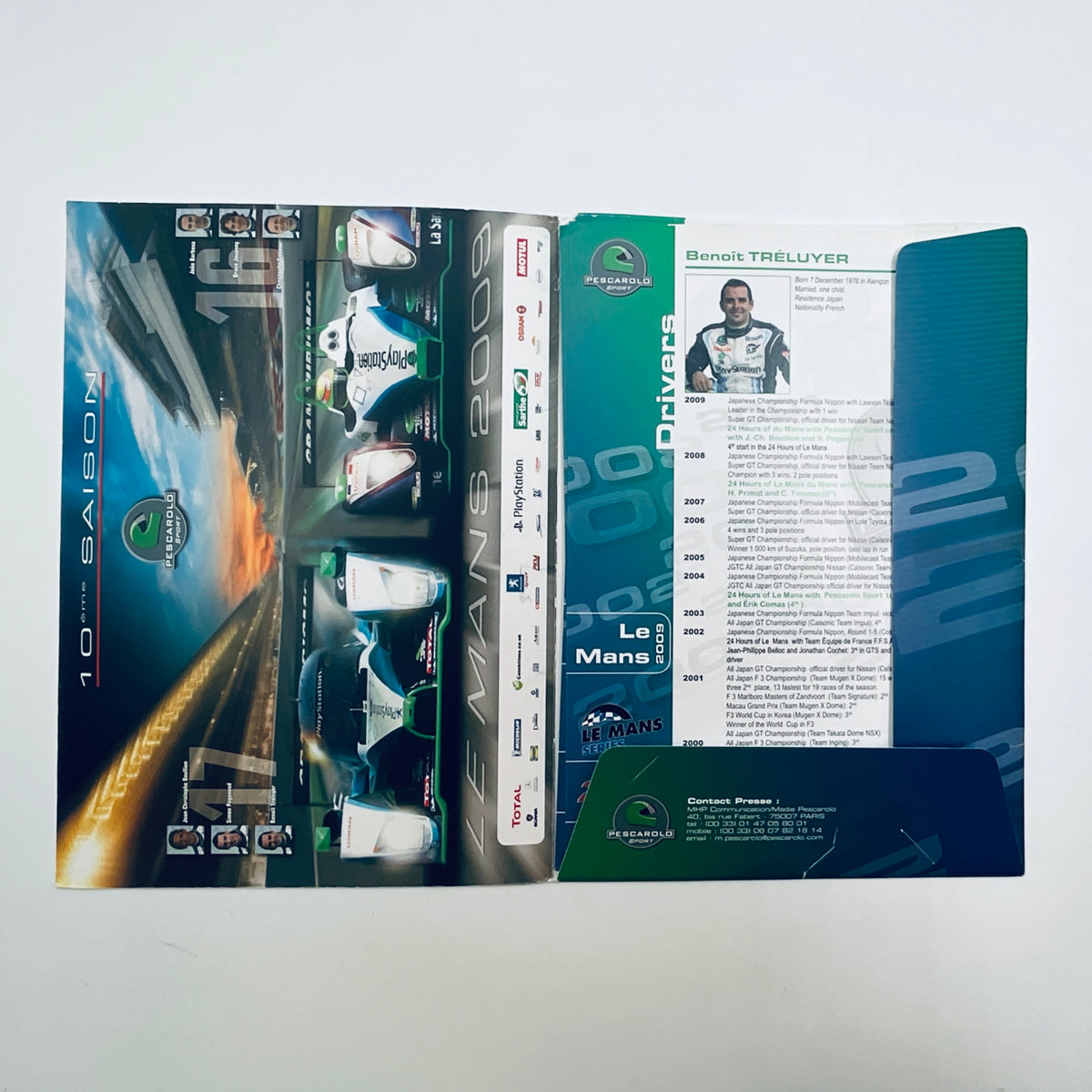 Secure this remarkable 2009 Pescarolo Sport Peugeot Motorsport Team Le Mans Media Pack—a genuine collector's treasure for serious enthusiasts. This professionally presented folder contains 20 double-sided colour A4 pages packed with exclusive insights into the team's Le Mans campaign, technical specifications of the race car, driver profiles, and comprehensive programme details. Housed in an elegant presentation folder, this rare documentation captures a defining moment in endurance racing and represents an invaluable addition to any motorsport memorabilia collection.