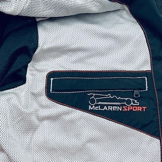 This genuine 2011 McLaren Mercedes F1 Team bomber jacket, officially produced by Hugo Boss, showcases a bold combination of matte and shiny black panels highlighted with McLaren Rocket red and white accents. Exceptionally rare and highly desirable, it’s an essential addition for passionate McLaren, Mercedes, or Formula 1 fans looking to enrich their collection with an exclusive piece of motorsport heritage.