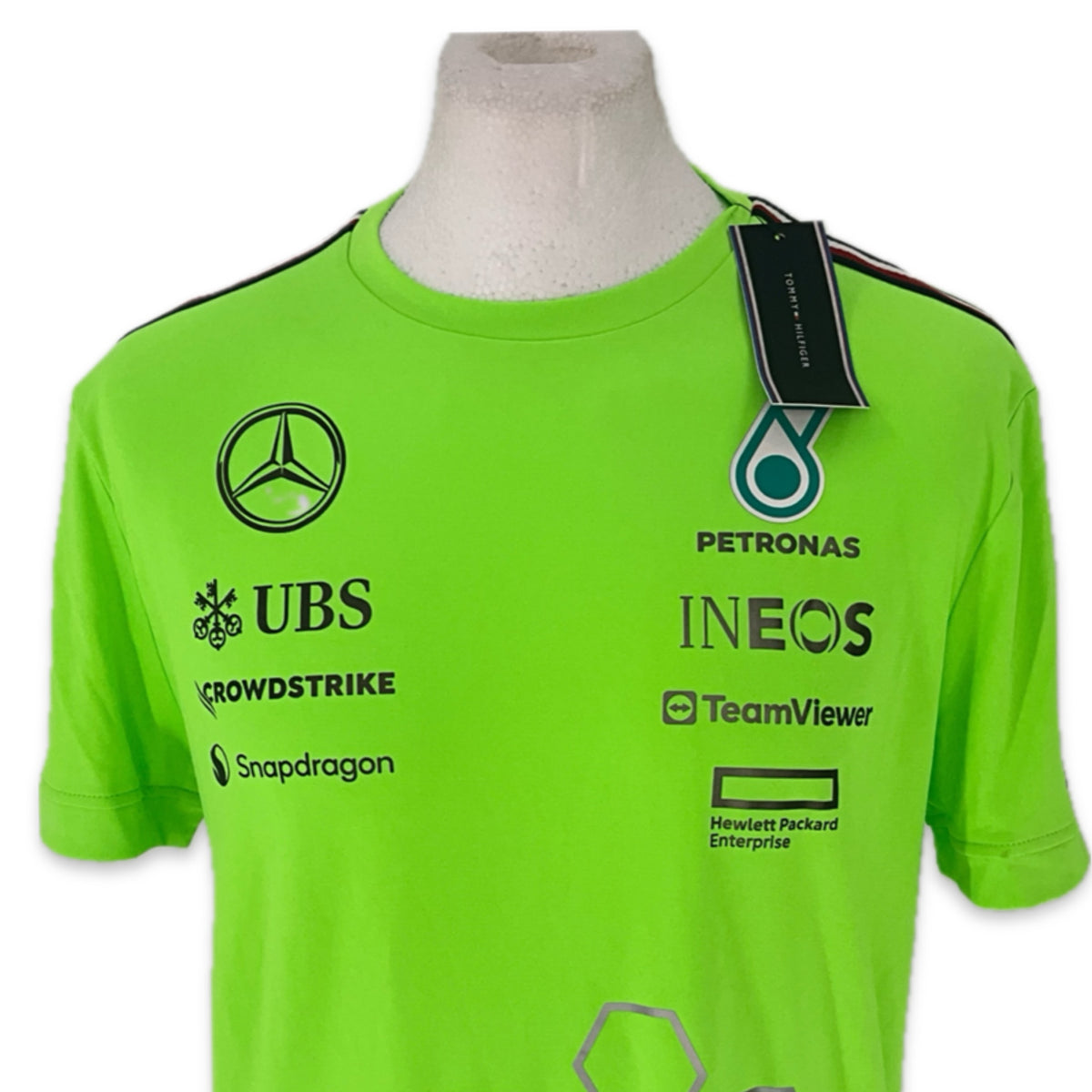 2024 Team Issue Mercedes AMG Petronas Formula One Tommy Hilfiger Hi-Vis Set Up T-Shirt-Brand New