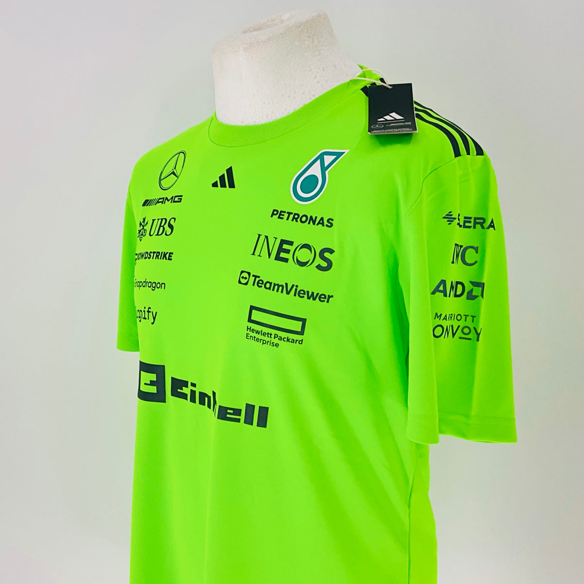 2025 Team Issue Mercedes AMG Petronas Formula One Adidas Hi-Vis Set Up T-Shirt-Team Issue