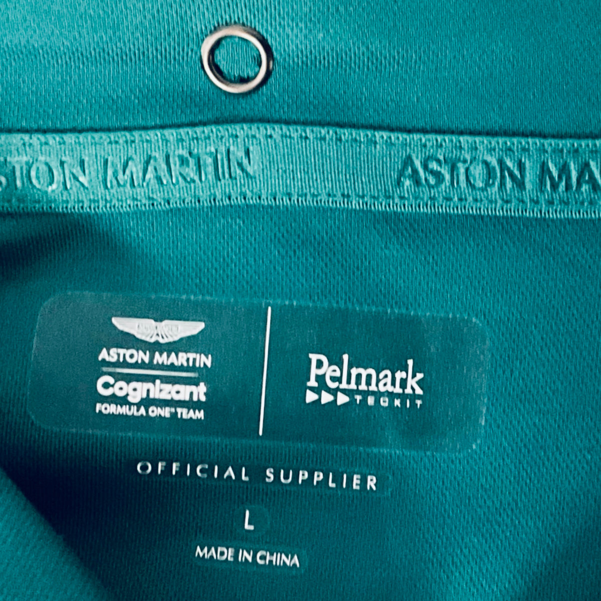 This genuine and authentic Aston Martin Racing Aramco F1 Tram issue pit crew race day polo shirt, from the 2023 F1 season designed by Pelmark for the team, combines quality style, and practicality. This rare and desirable is an essential item for any Aston Martin Racing or F1 fan looking to enhance their collection with officially crafted team gear.