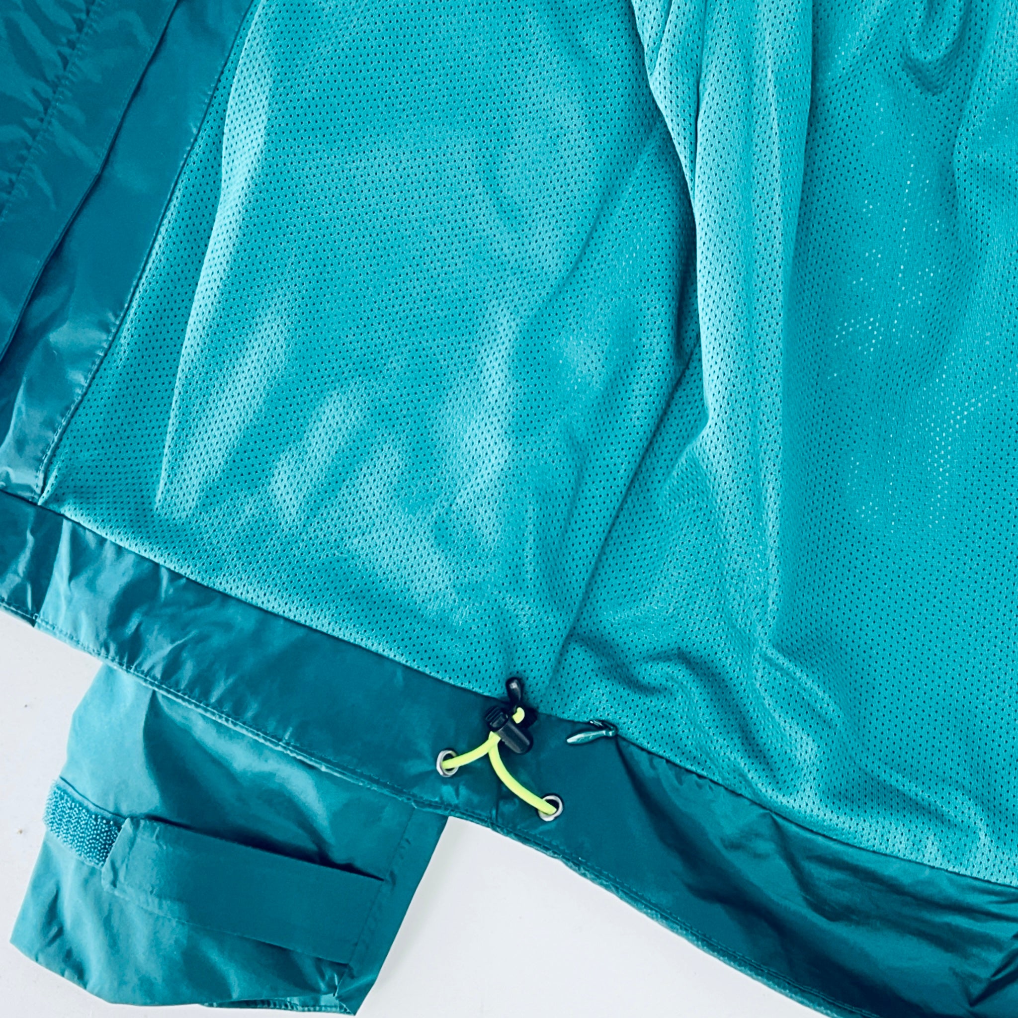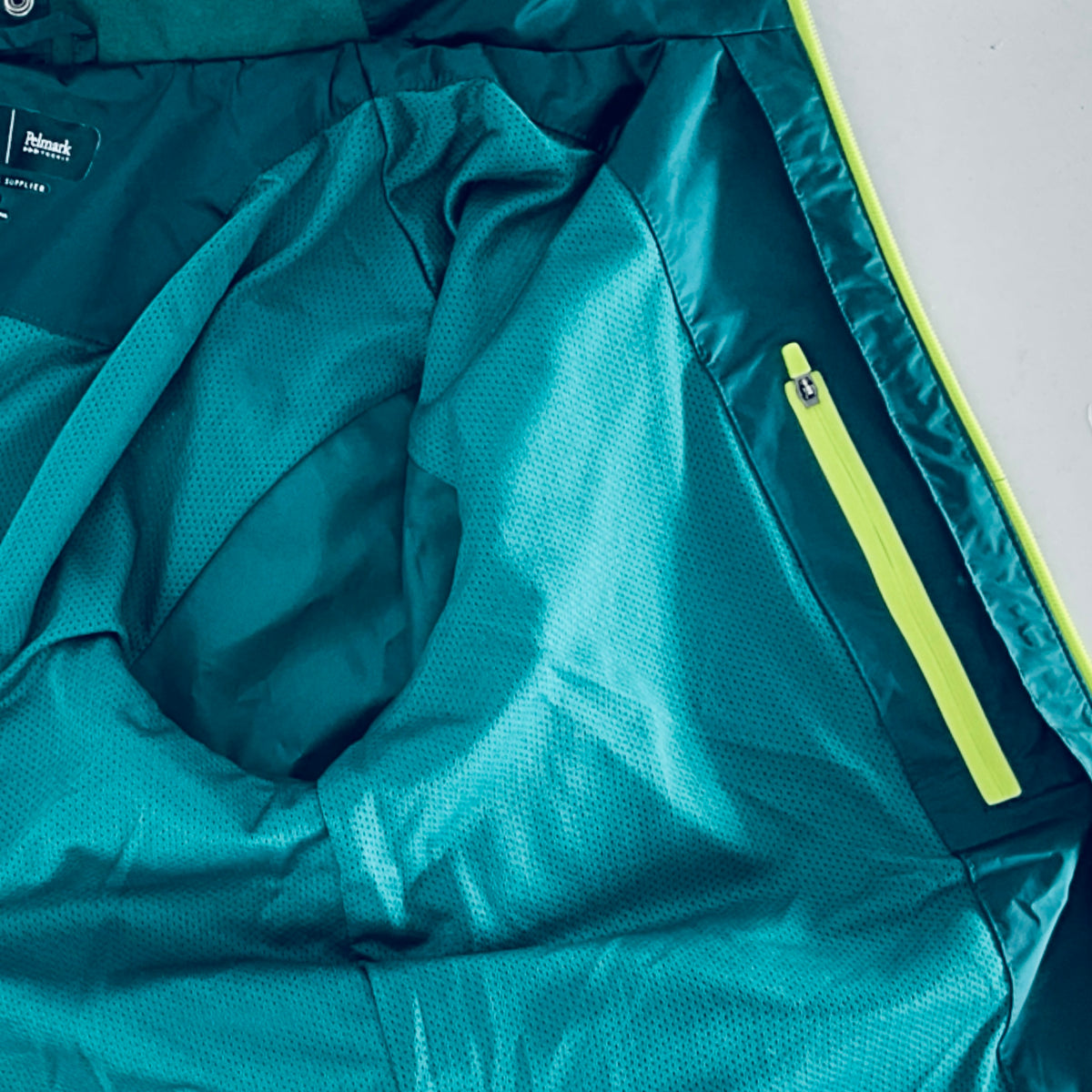 This genuine and authentic Aston Martin Racing Aramco F1 Tram issue pit crew race day Hooded rain jacket, from the 2023 F1 season designed by Pelmark for the team, combines quality style, and practicality. This rare and desirable is an essential item for any Aston martin Racing or F1 fan looking to enhance their collection with officially crafted team gear.