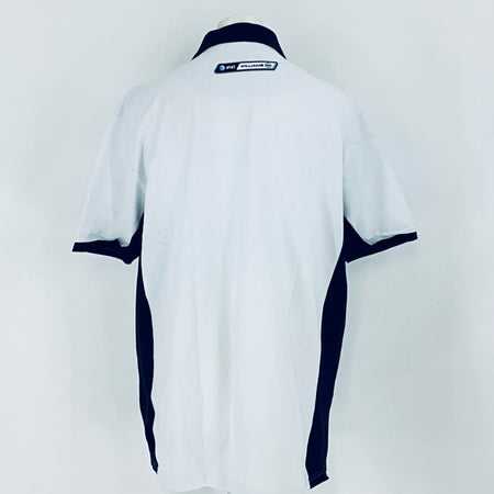 This authentic AT&T Williams RacingF1 Team Issue polo shirt, crafted exclusively for the team by Clothing Designer McGregor, showcases the iconic Williams blue and white with precisely embroidered team logos.. Ideal for any Williams Racing or F1 fan, it offers a genuine piece of racewear to enhance your collection. Don’t miss the chance to own this rare and highly prized artifact of F1 history.