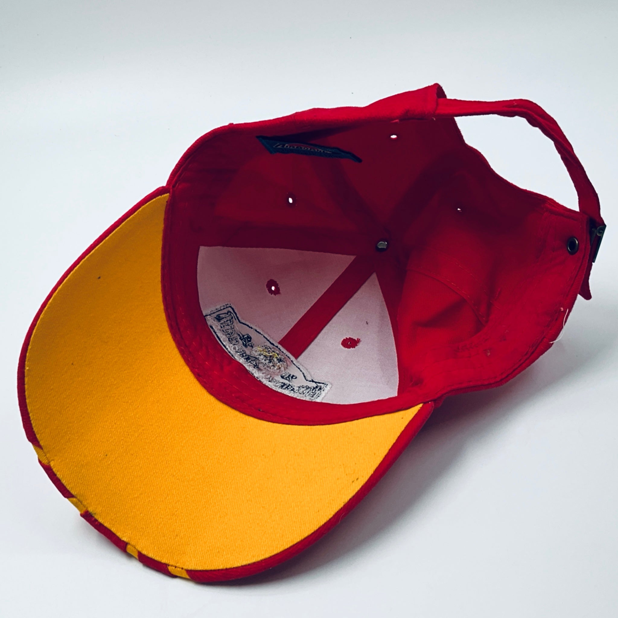 Represent the East Africa Safari Classic Rally with this official 2010 event cap. Featuring an embroidered event logo on the crown, gold accents on the peak, and a contrasting gold underside, it also offers an adjustable buckle for a comfortable fit. This rare, collectible cap is a must-have for any dedicated rally fan's collection.