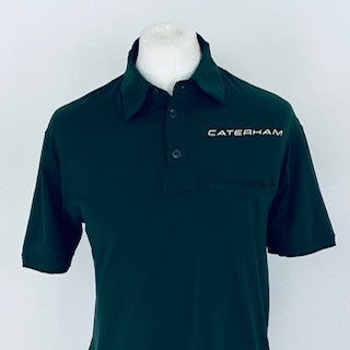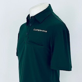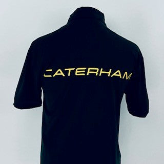 Show your passion for Caterham with this genuine F1 Team Issue polo shirt in iconic British Racing Green, adorned with striking gold Caterham F1 logos on front and back. Designed with a timeless three-button collar, it offers a stylish look perfect for dedicated fans. Crafted exclusively for team members and not sold to the public, this rare piece is a must-have collector’s item for any true enthusiast.