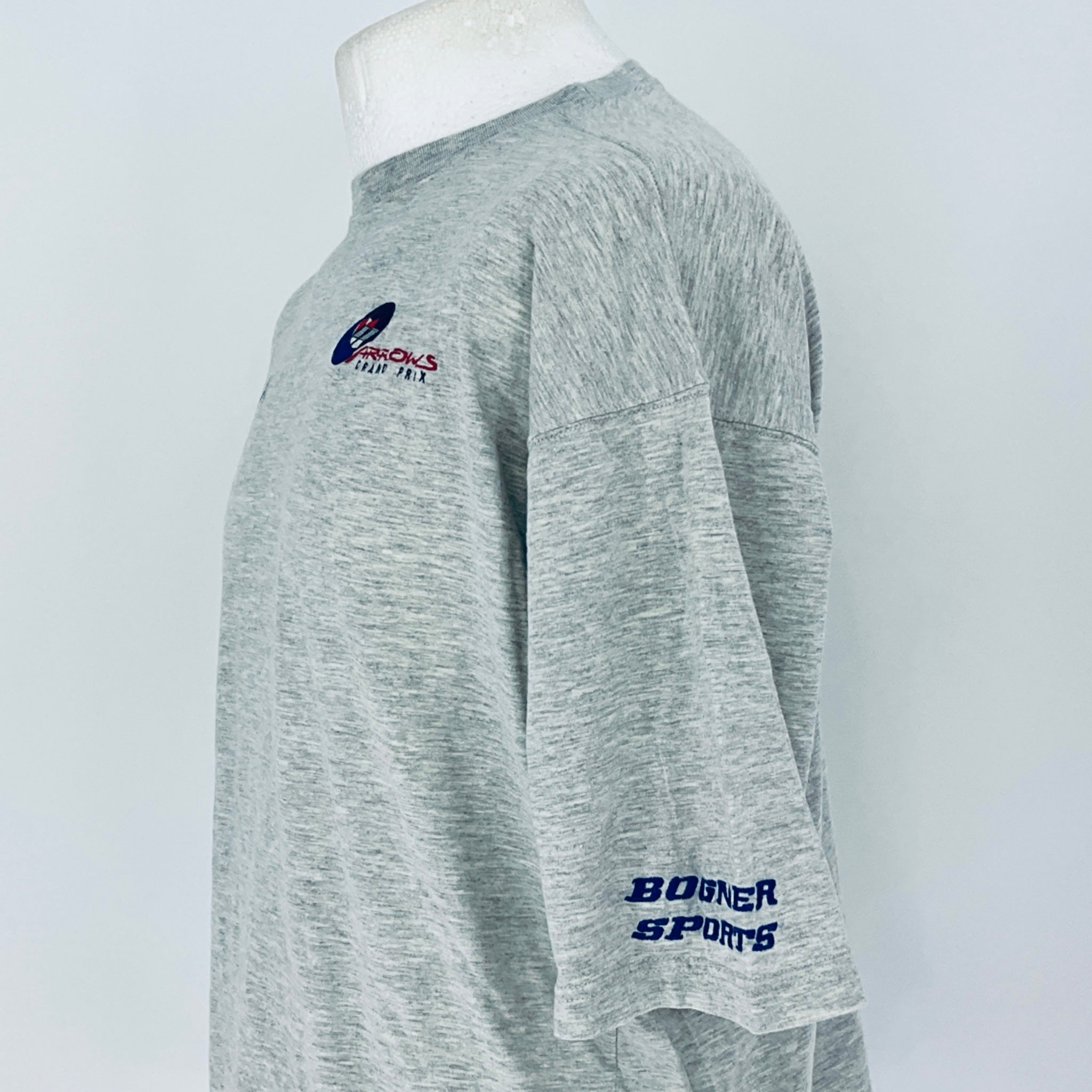 This genuine Danka Arrows Grand Prix F1 Team Issue t-shirt, designed originally for the pit crew, offers superior quality and a stylish look. Featuring a timeless grey design with meticulously embroidered team and sponsor logos, it’s the ideal choice for Arrows and F1 fans eager to add authentic racewear to their collection. Secure this rare and sought-after piece of F1 history before it’s gone.