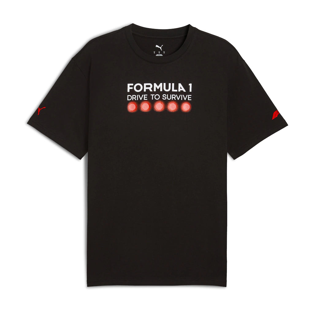 Show your passion for Formula 1 and your excitement for Drive to Survive with the official apparel range. This tee features the iconic five red lights on the chest and Drive to Survive text, and a large F1 car graphic on the back.