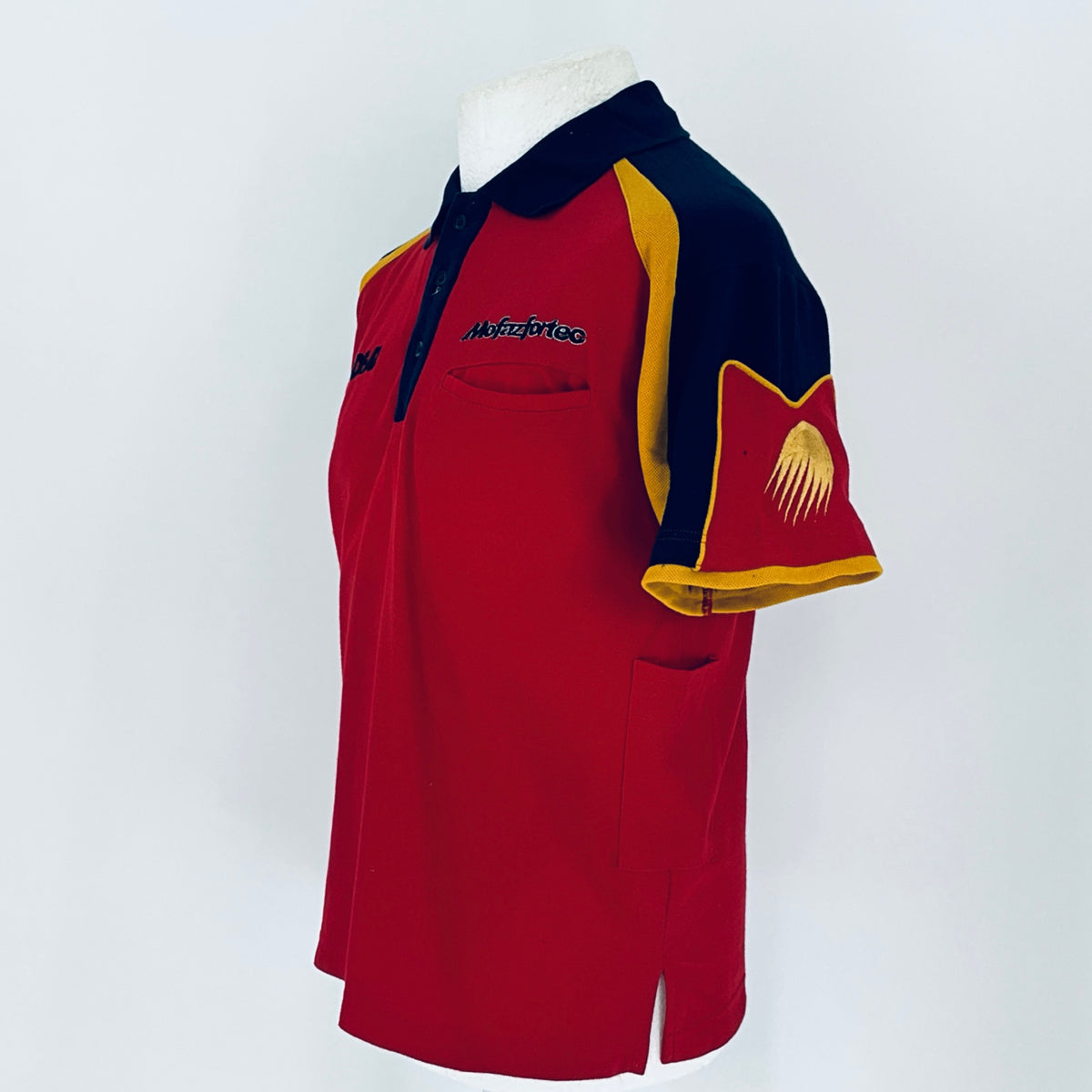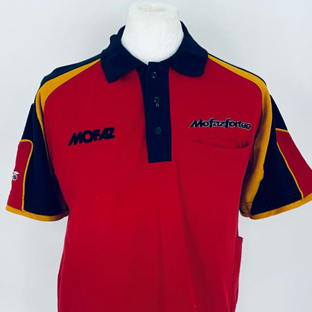This genuine Fortec Motorsport team shirt celebrates one of the most renowned single-seater racing teams in junior categories including F3, F4, and Formula Renault. Fortec has developed top talent, including current F1 drivers Charles Leclerc and Oliver Bearman, along with legends such as Daniel Ricciardo, Juan Pablo Montoya, Heikki Kovalainen, and Marcus Ericsson. Crafted from 100% cotton, this short-sleeved polo shirt showcases the Fortec team logo embroidered on both the chest and back. Presented in vibrant team red with contrasting black side panels and white accents, this sought-after shirt is essential for any motorsport fan. Wearing it aligns you with a proud heritage of racing success.