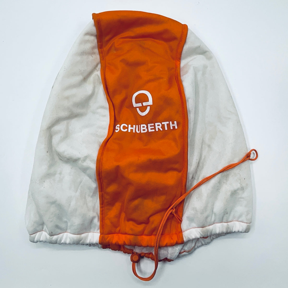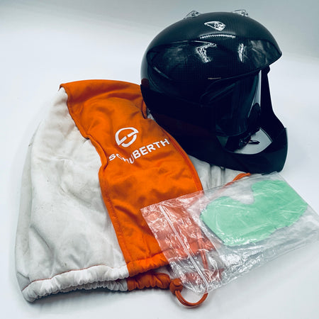 This genuine and authentic race-worn Shuberth helmet was designed specifically for the Force India F1 Team’s pit crew. Featuring a striking gloss carbon fiber pattern and the distinctive Shuberth logo in white on the back, it perfectly blends style and practicality. With padded goggles and chin strap, it ensures both comfort and protection during high-pressure pit stops. It includes a Force India Team orange and white storage bag. An exceptionally rare collector’s item, this authentic team-issued helmet is a must-have for any Aston Martin or F1 enthusiast seeking exclusive memorabilia.