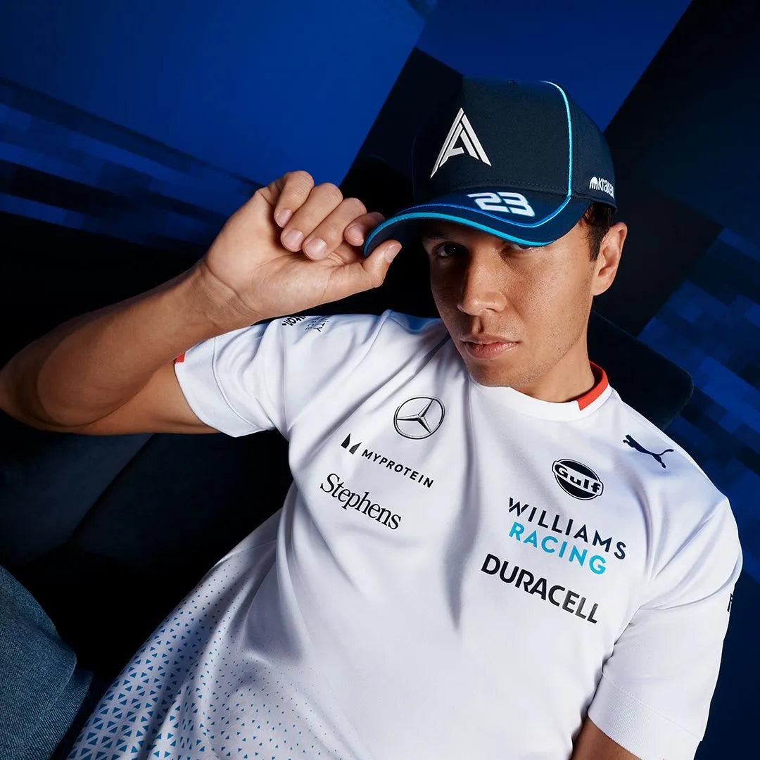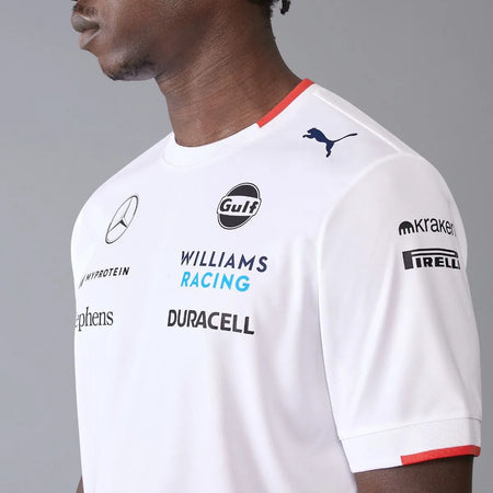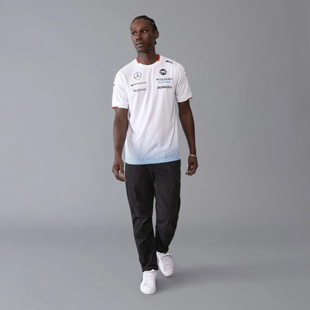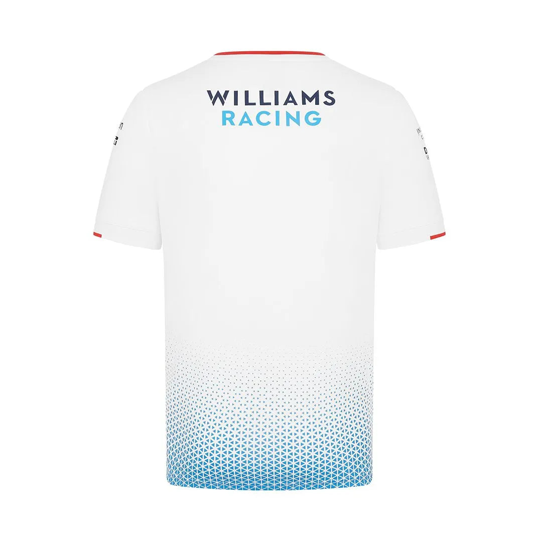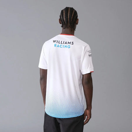 The official 2024 Williams Racing Mens Team Jersey White as worn by Alex Albon and Logan Sargeant. Features the same gradient print seen throughout the 2024 Team collection, alongside all the official team and sponsor branding from the 2024 Formula 1 season.