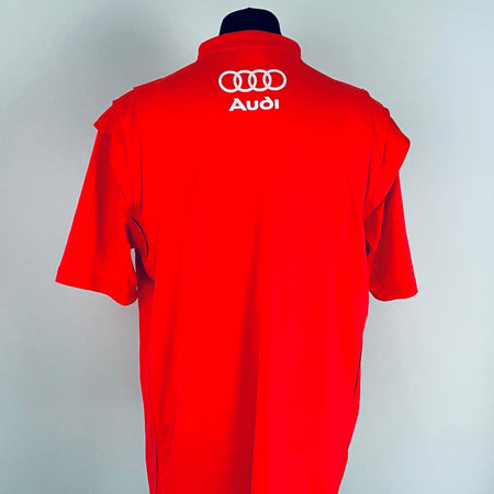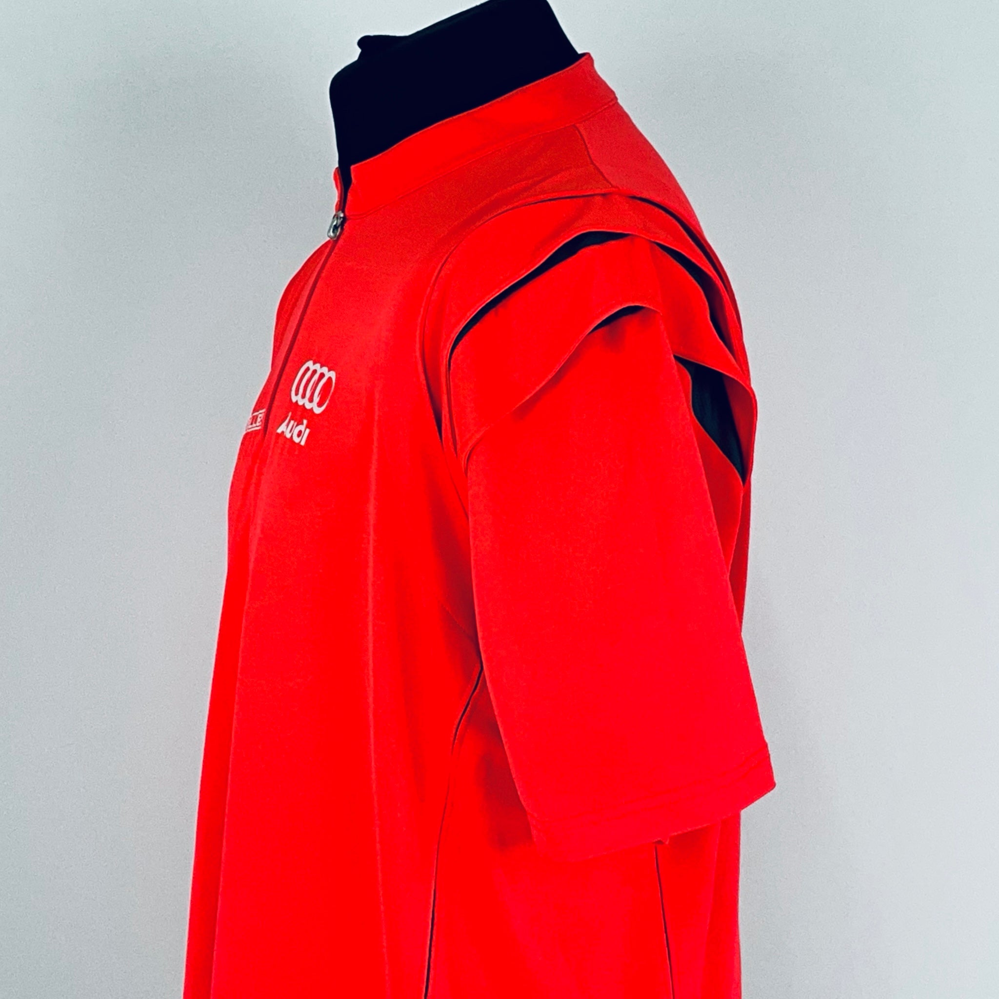 Experience the thrill of Le Mans 24 hour race with our Kolles Racing Audi R10 LMP1 Team Issue Polo Shirt. Show your support for the Audi team with this high-quality, Rocket Red polo shirt. This team-issued shirt was made for team members only and not on sale to the public, this shirt is a must-have for any racing fan.