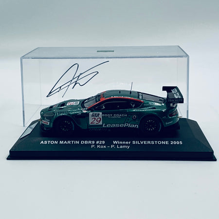 Celebrate motorsport history with this exclusive 1:43 scale Aston Martin Racing DBR9 #29, personally signed by legendary driver Pedro Lamy. Commemorating the iconic 2005 Silverstone victory, this meticulously detailed collectible features an authentic black Sharpie autograph on the display case. A treasured piece for any serious Aston Martin enthusiast, this limited edition model captures the prestige and performance of one of racing's most memorable moments. Secure this rare gem for your collection today.