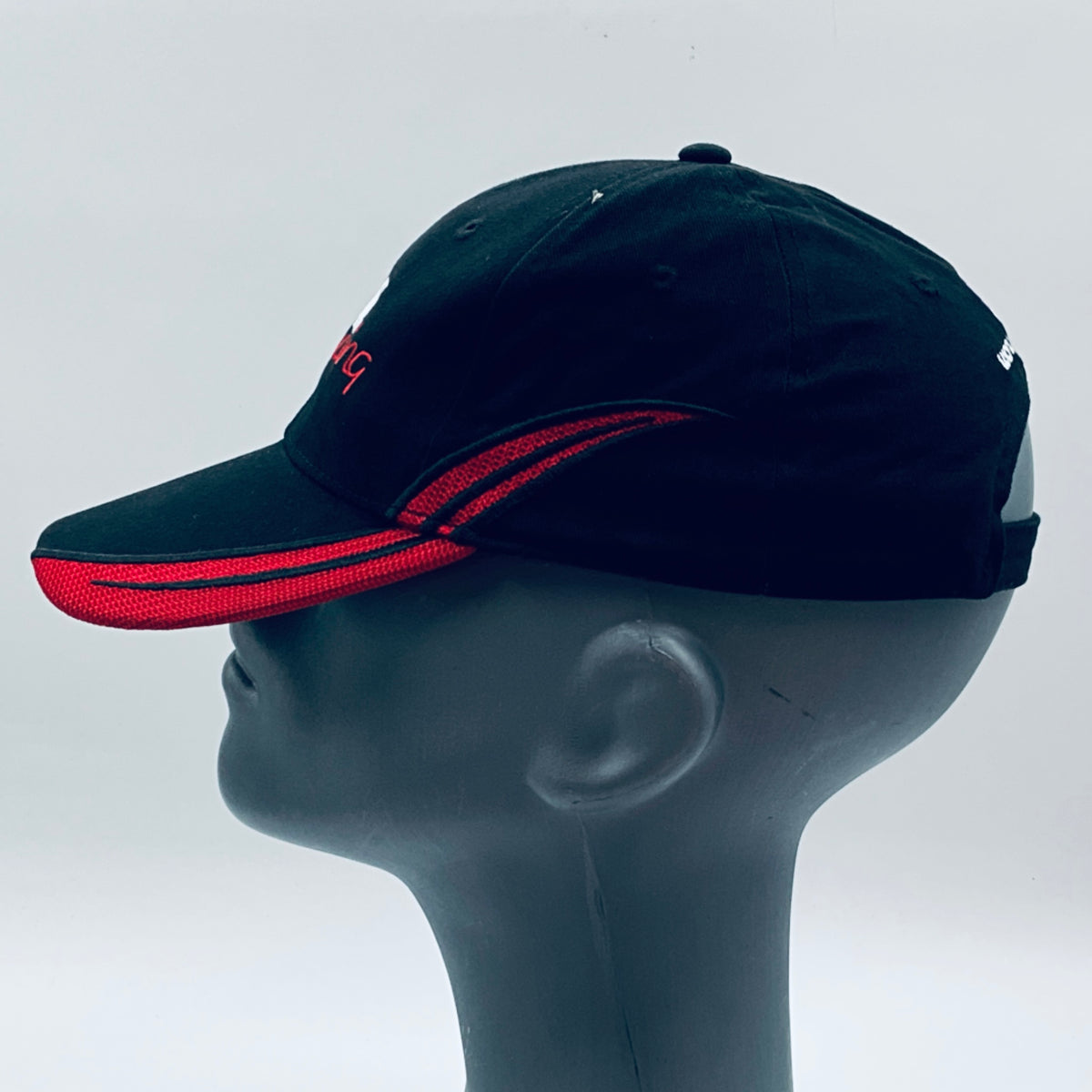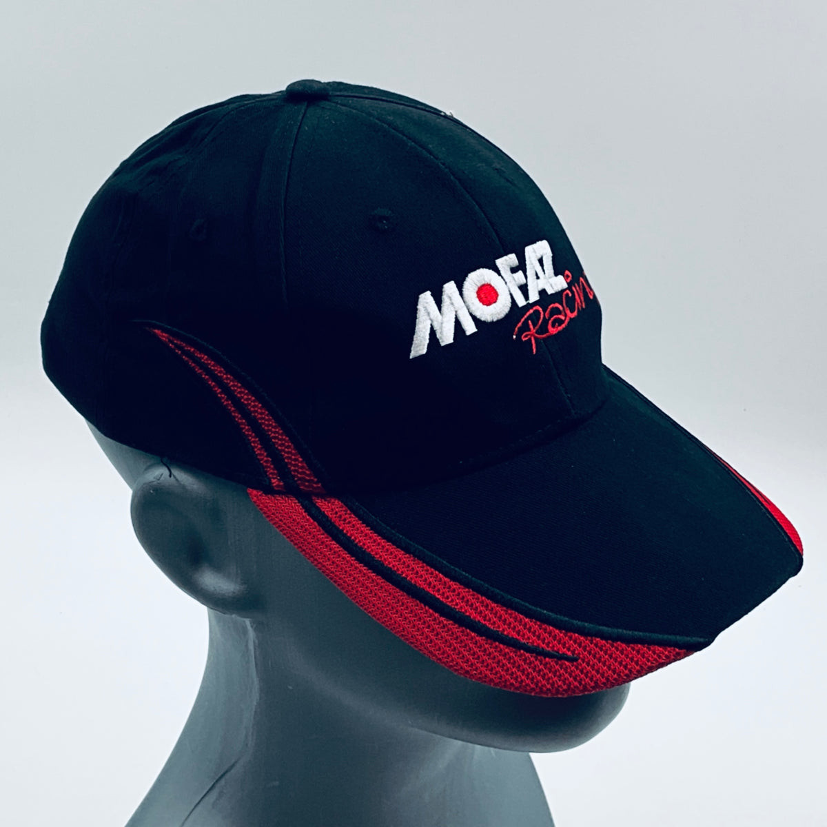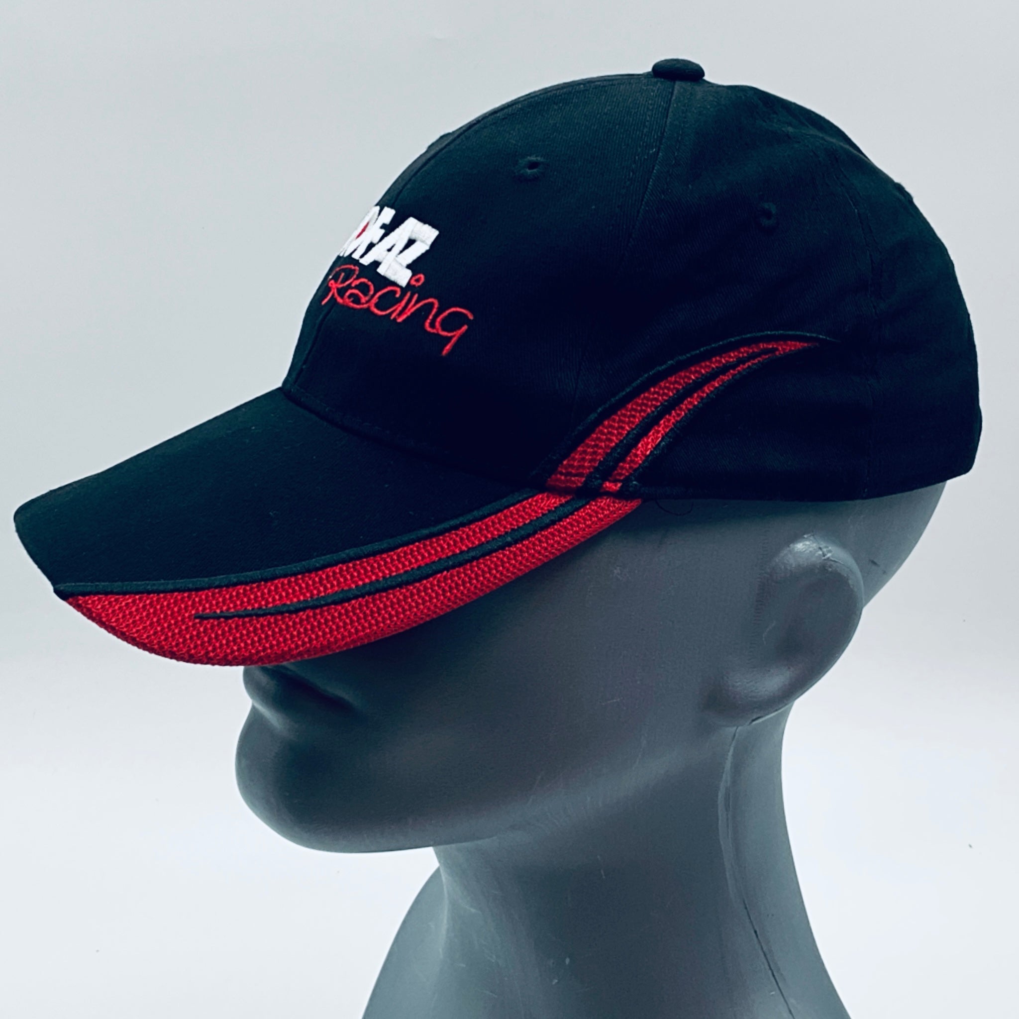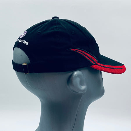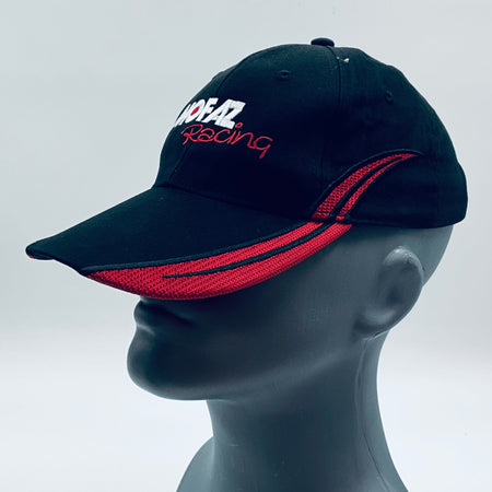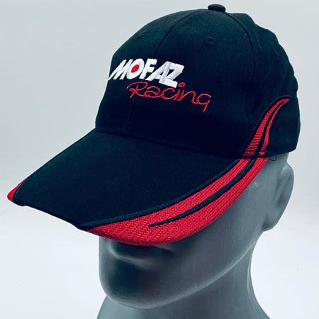 Authentic Mofaz Racing Formula Renault 3.5 Team pit crew cap. This classic black 6-panel design with a curved peak showcases red accents and detailed embroidery. A striking and rare piece, it makes an excellent addition to any collection or a stylish accessory for everyday wear.