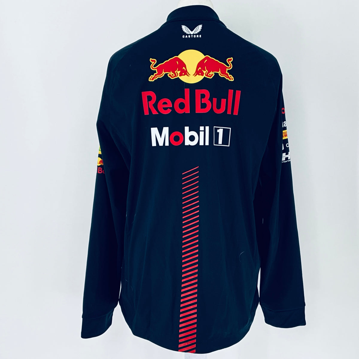 This genuine and authentic Oracle Red Bull Racing F1 Tram issue pit crew race day softshell jacket, from the 2023 F1 season designed by Castore for the team, combines quality style, and practicality. This rare and desirable is an essential item for any Red Bull Racing or F1 fan looking to enhance their collection with officially crafted team gear.