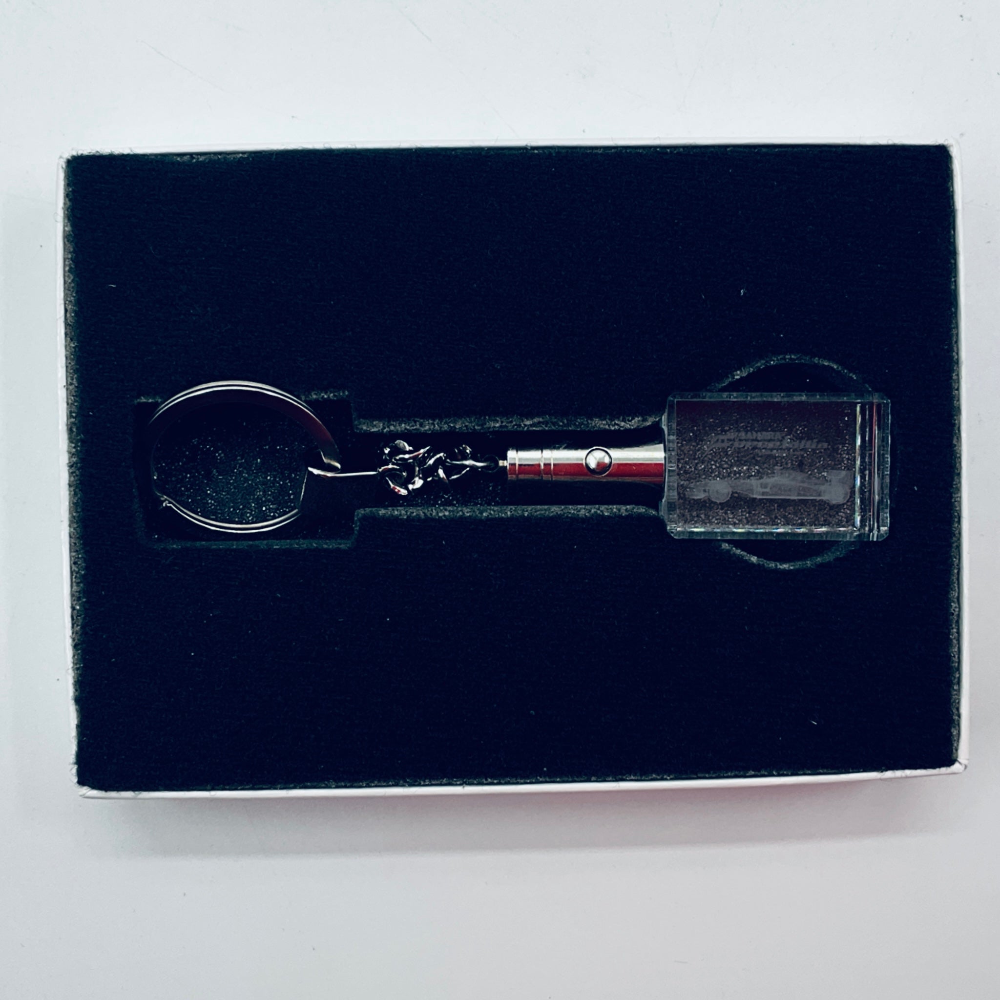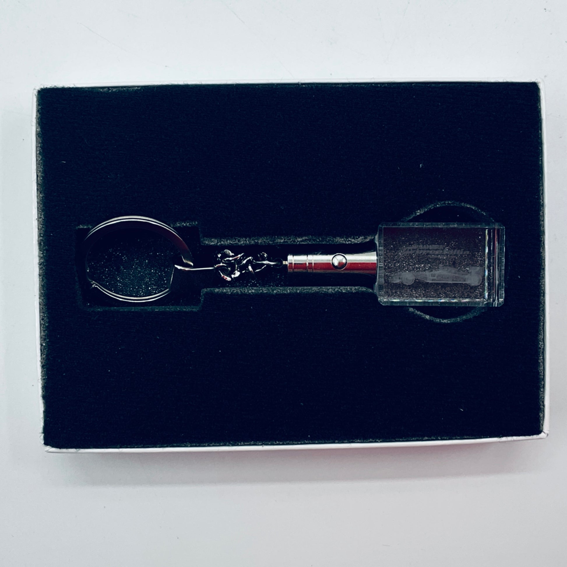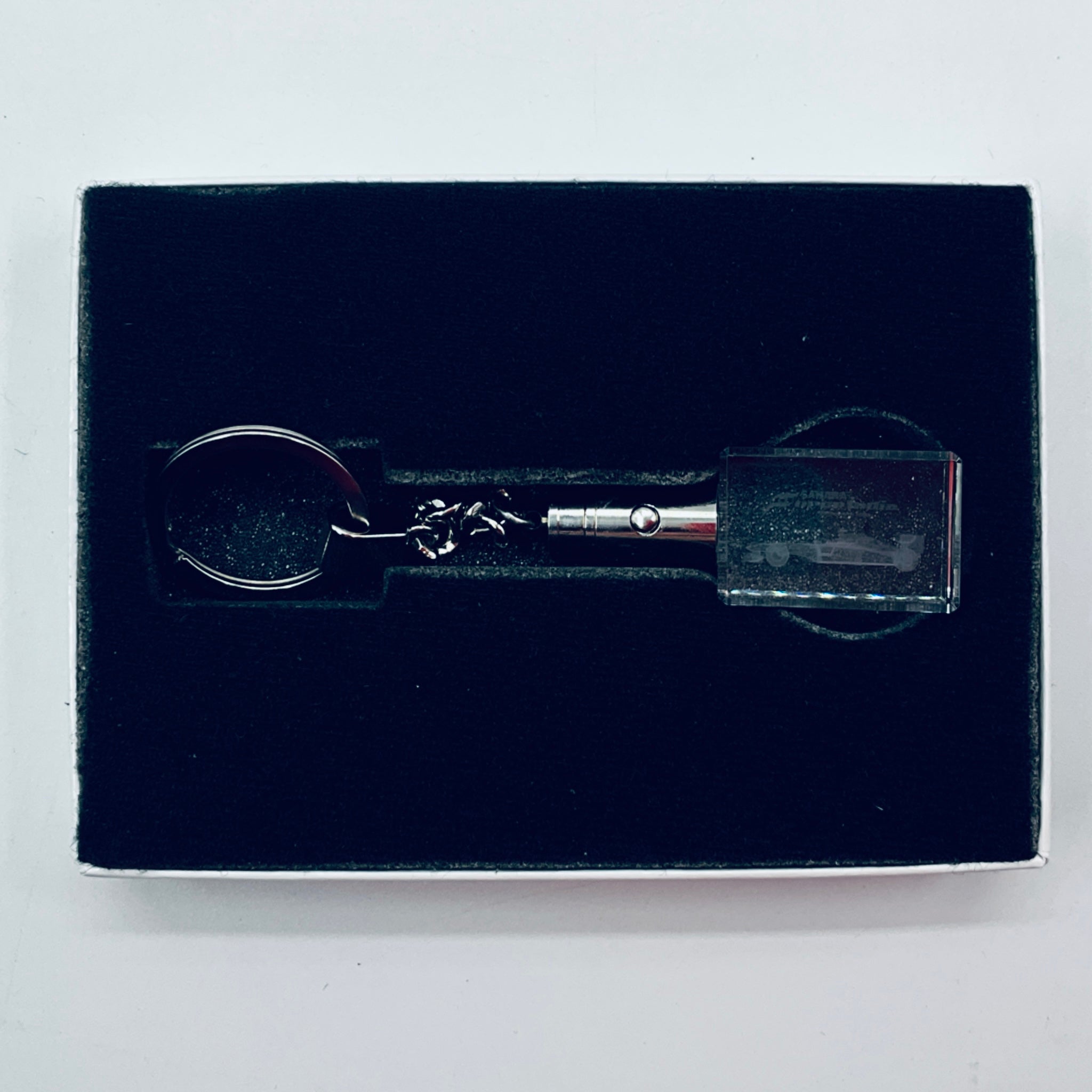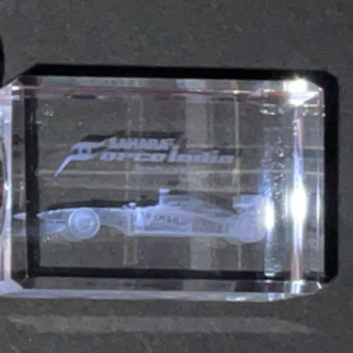 Official Sahara Force India F1 Team key ring presented in a gift box. Featuring a crystal block with a silhouette of the F1 car inside, illuminated by a built-in light button. This striking and elegant key ring is an essential addition for any Sahara Force India or F1 enthusiast’s collection. A unique and sought-after piece you won’t want to miss out.