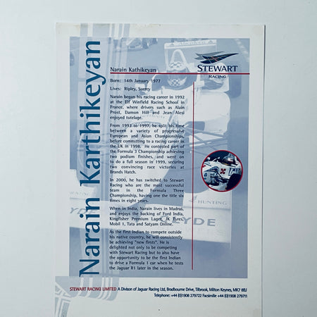 Narain Karthikeyan Stewart Racing Team Drivers Card