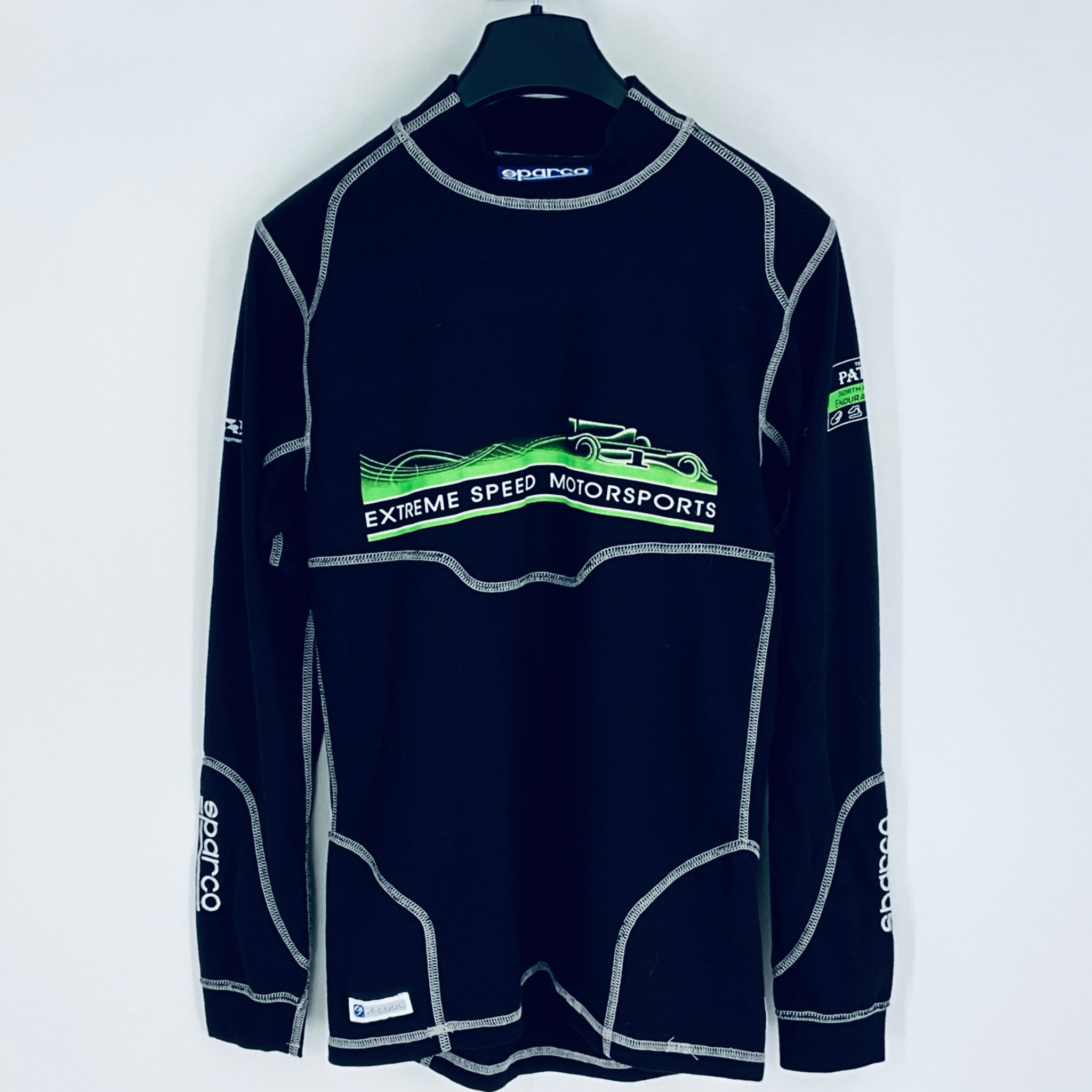 Secure an authentic piece of motorsport heritage with this genuine race-worn Nomex top from David Brabham's Extreme Speed Motorsports campaign. Crafted by Sparco and featuring the iconic 2014 American Le Mans season Team branding and sponsor logos, this garment represents genuine ALMS endurance racing excellence. A rare collectible that connects you directly to professional motorsport history and the legendary drivers who pushed the limits at the world's most demanding circuits.