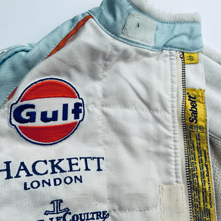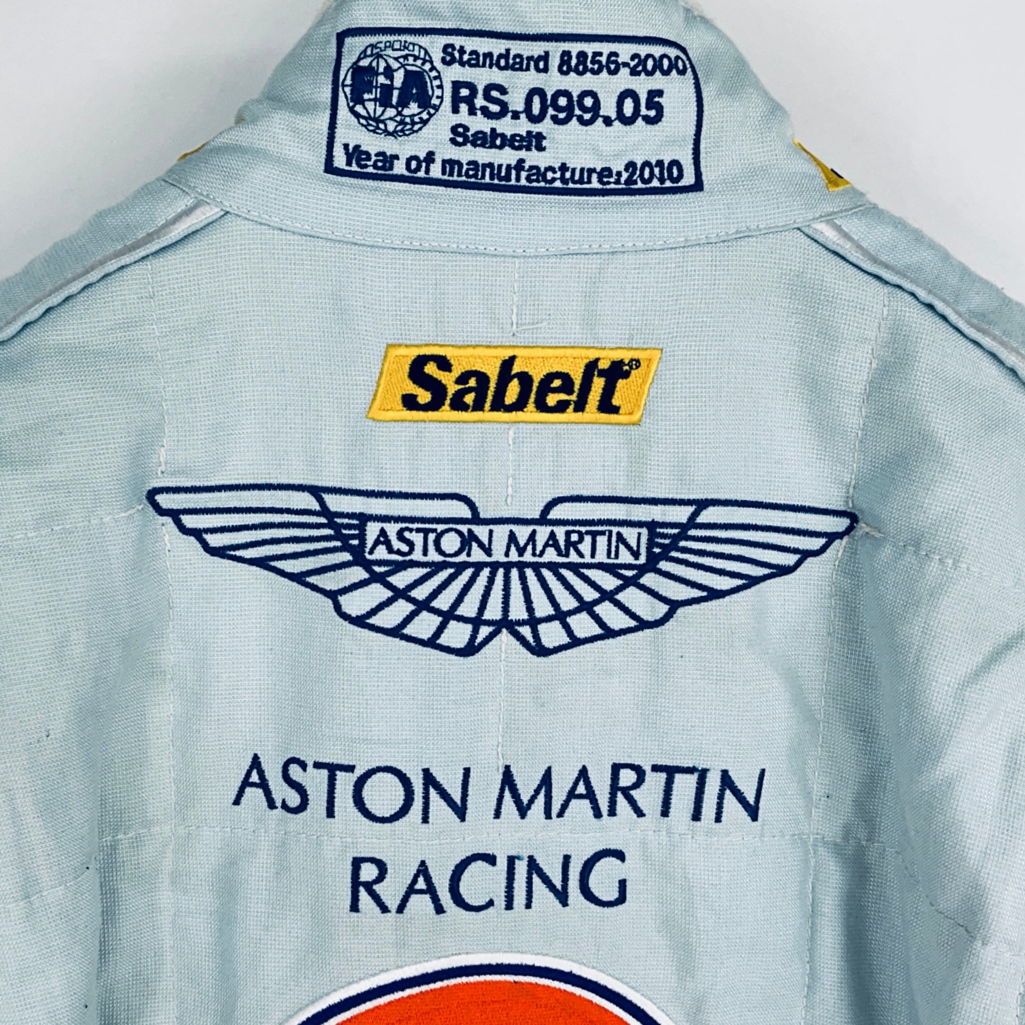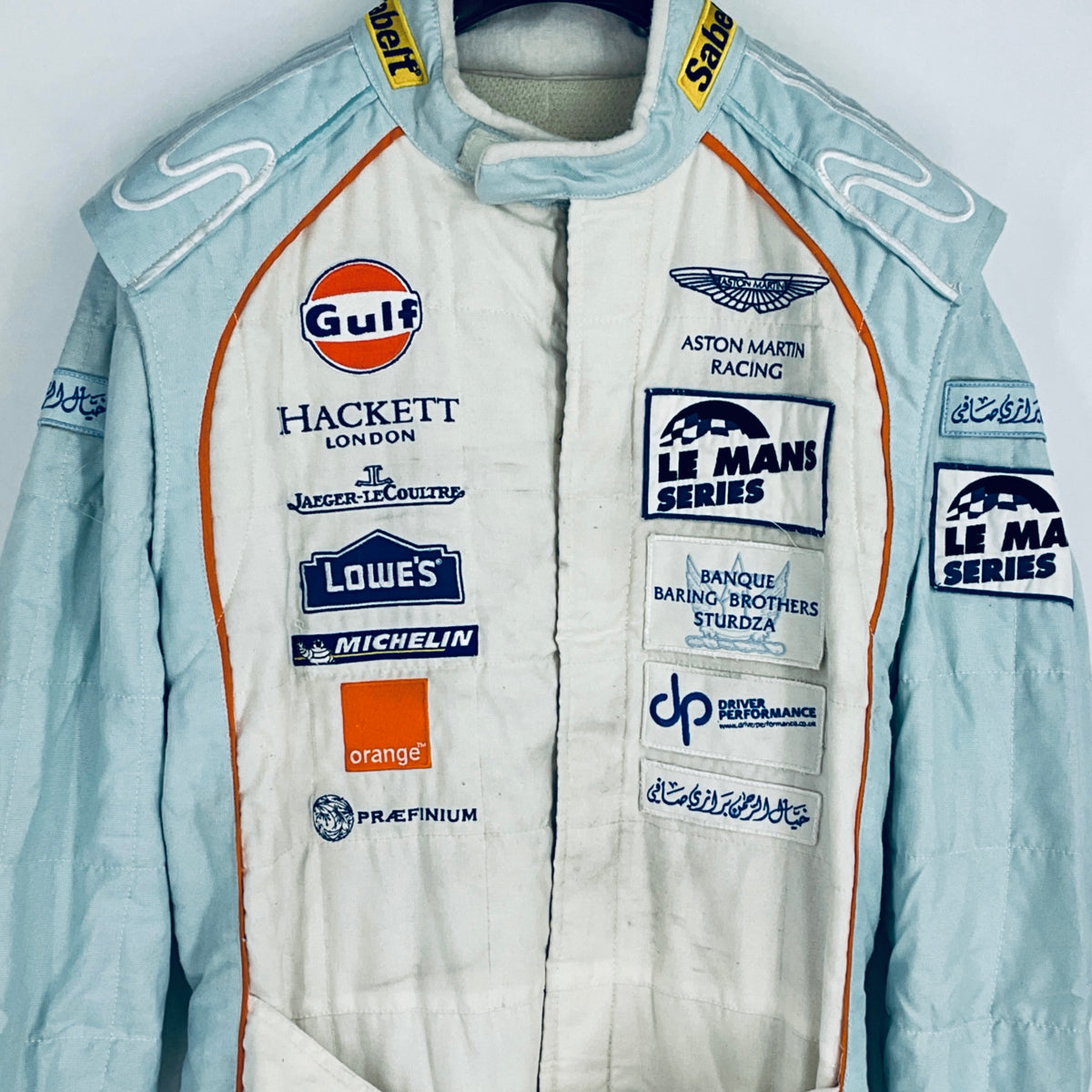 This iconic race suit carries the legacy of Juan Barazi's unforgettable 2010 Le Mans campaign, worn during the legendary 24-hour endurance battle in the Gulf-liveried Lola LMP1. Featuring the distinctive Gulf colours and Aston Martin Racing insignia, this authentic piece represents a defining chapter in motorsport history. Every stitch and sponsor badge tells the story of professional racing at its finest—the raw determination and technical mastery that defines Le Mans competition. For collectors and enthusiasts who appreciate genuine motorsport heritage, this is more than memorabilia; it's a tangible connection to one of racing's most celebrated moments. Own a piece of endurance racing excellence that embodies the spirit of Aston Martin's greatest achievements.