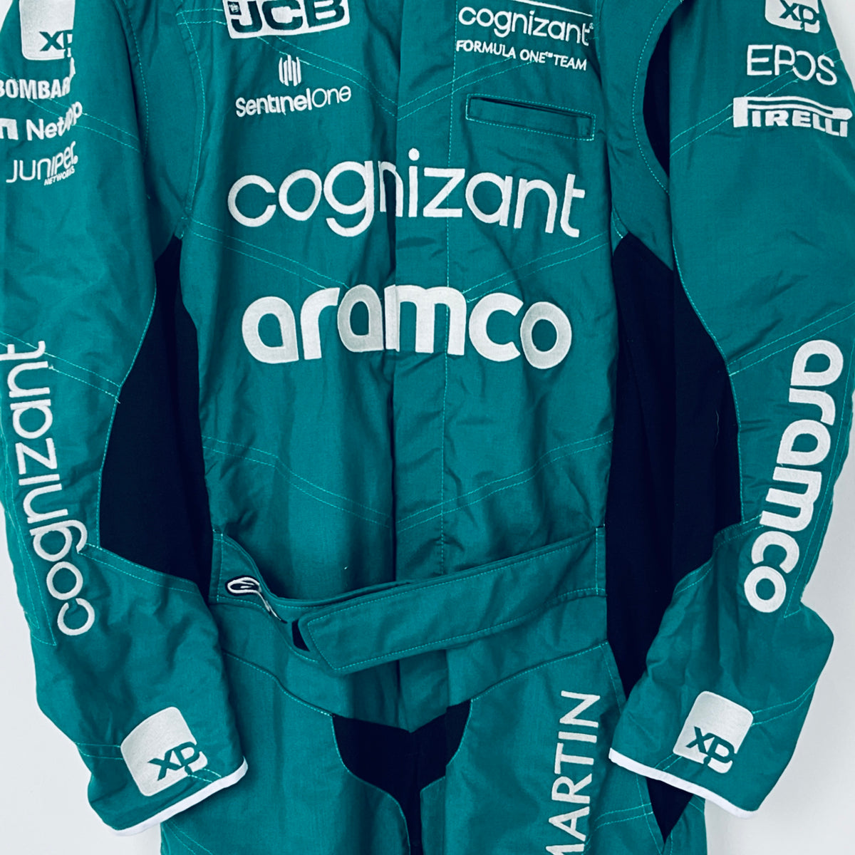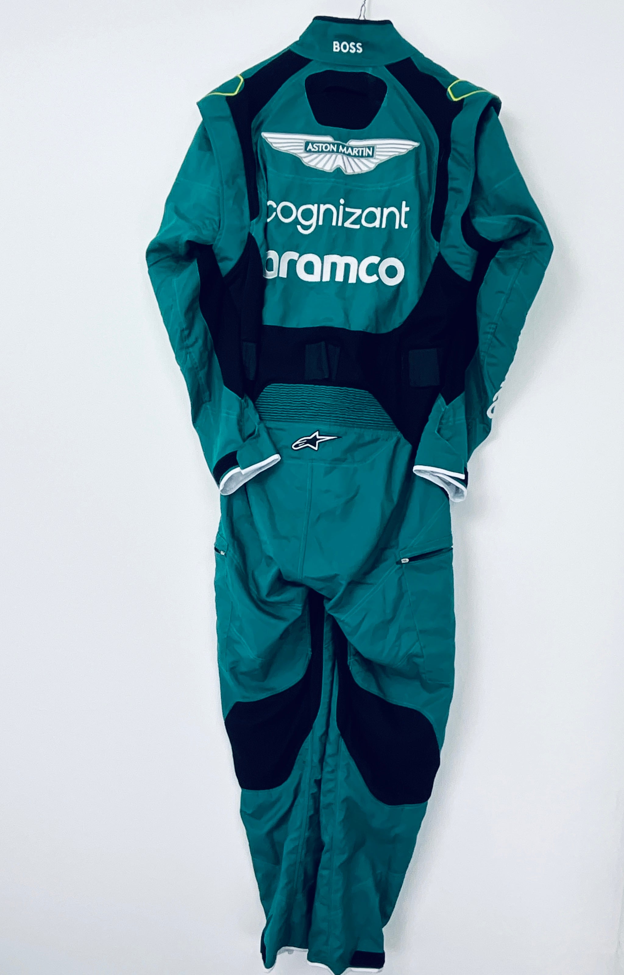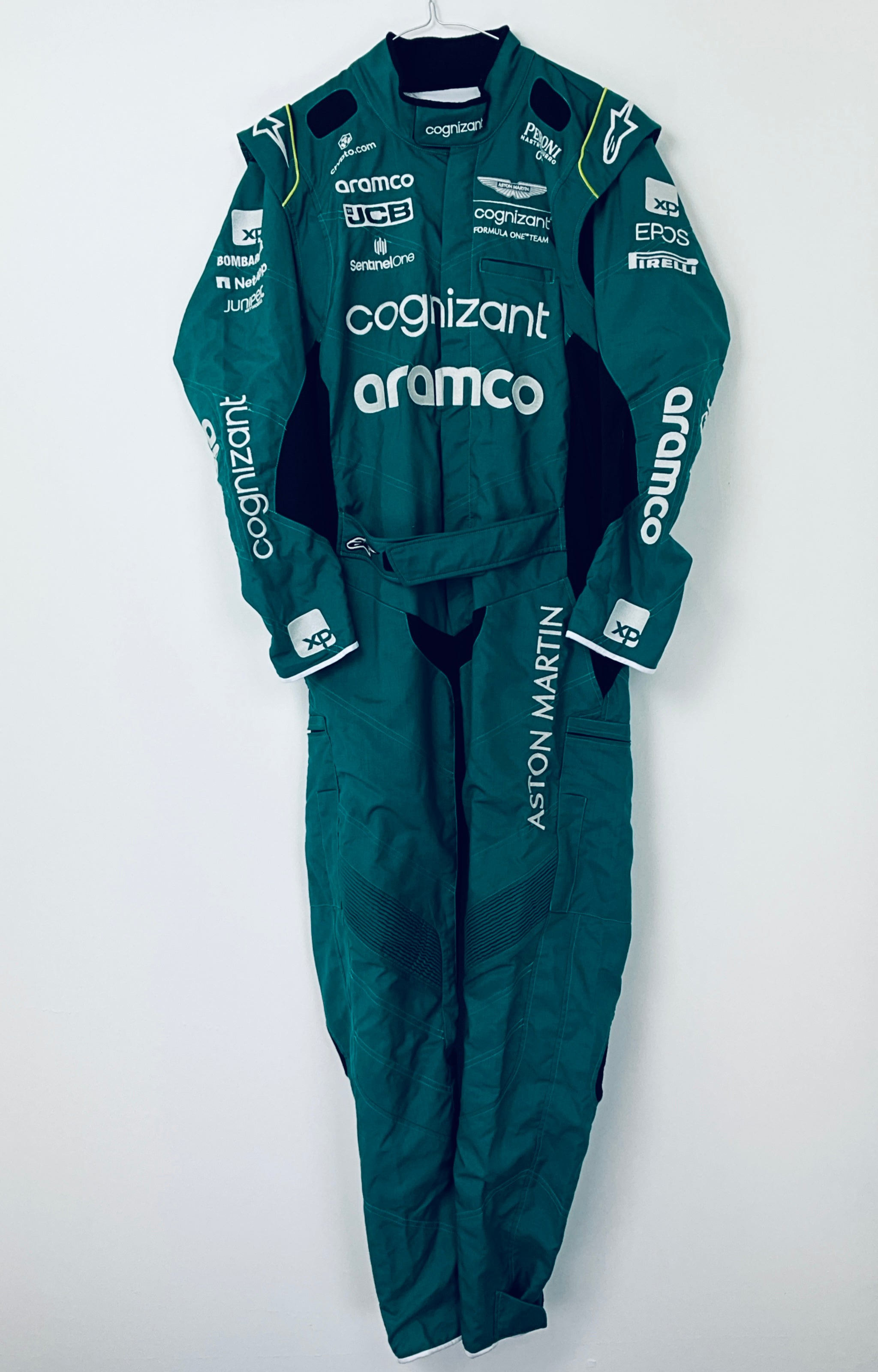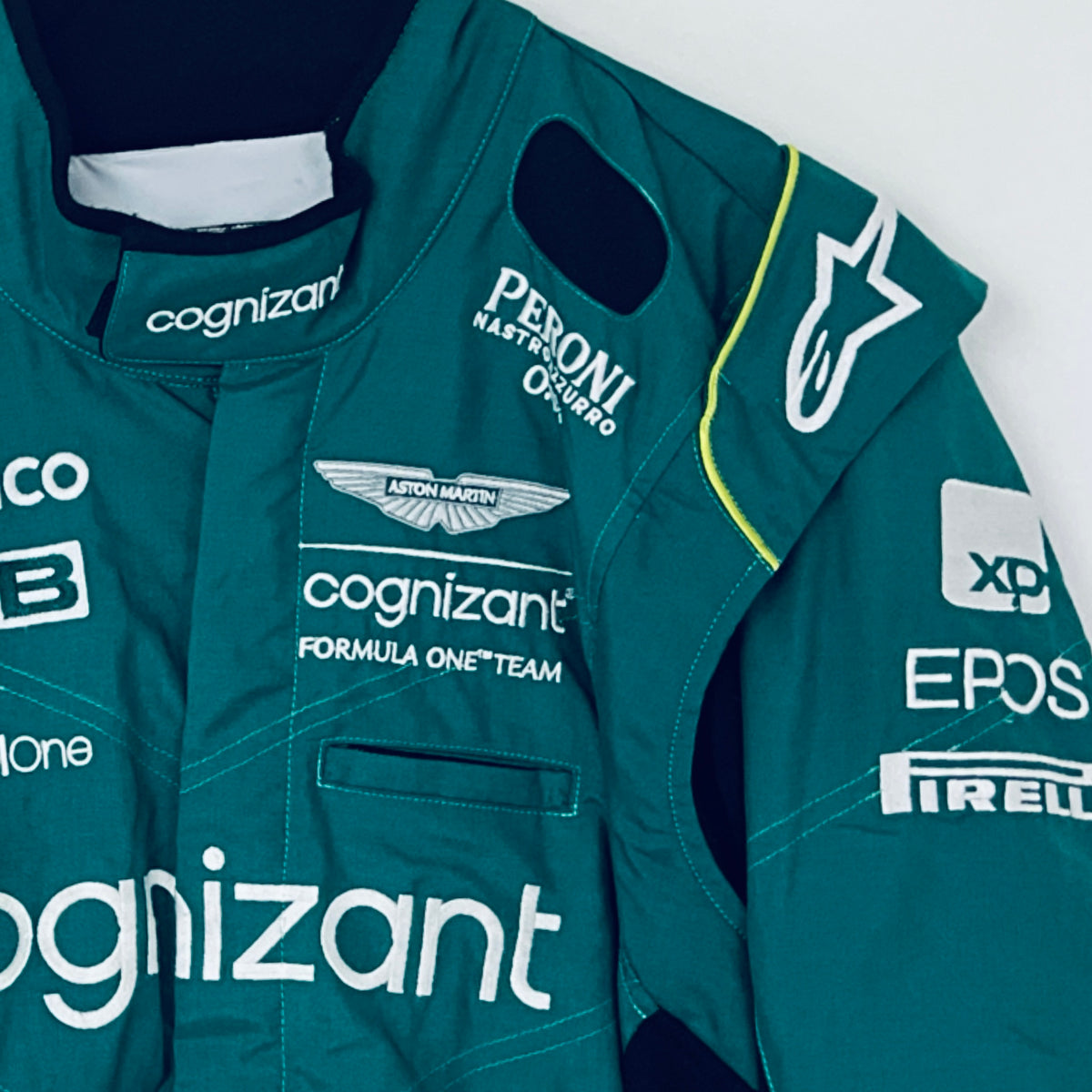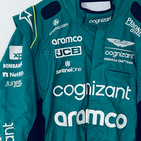 This genuine 2023 team-issued suit was crafted by Alpinestars exclusively for the Aston Martin Aramco CognizantF1 Team’s pit-stop crew, responsible for servicing Fernando Alonso and Lance Stroll's cars. Featuring a striking Aston Martin Aramco CognizantF1 Team British Racing Green with black and yellow detailing, it proudly displays embroidered official team logos and sponsor branding from the 2023 season. A rare and highly sought-after piece, this suit is perfect for any dedicated Aston Martin Aramco CognizantF1 Team fan or F1 memorabilia collector.