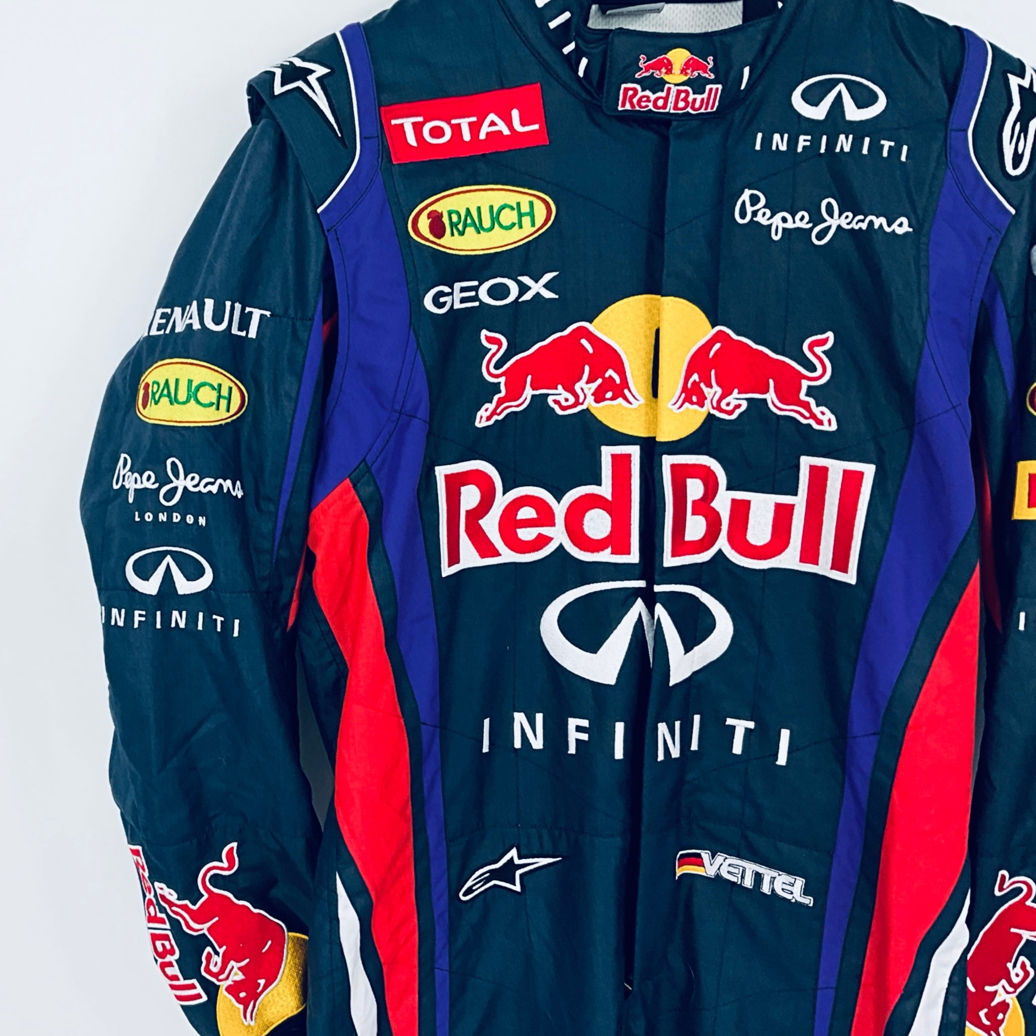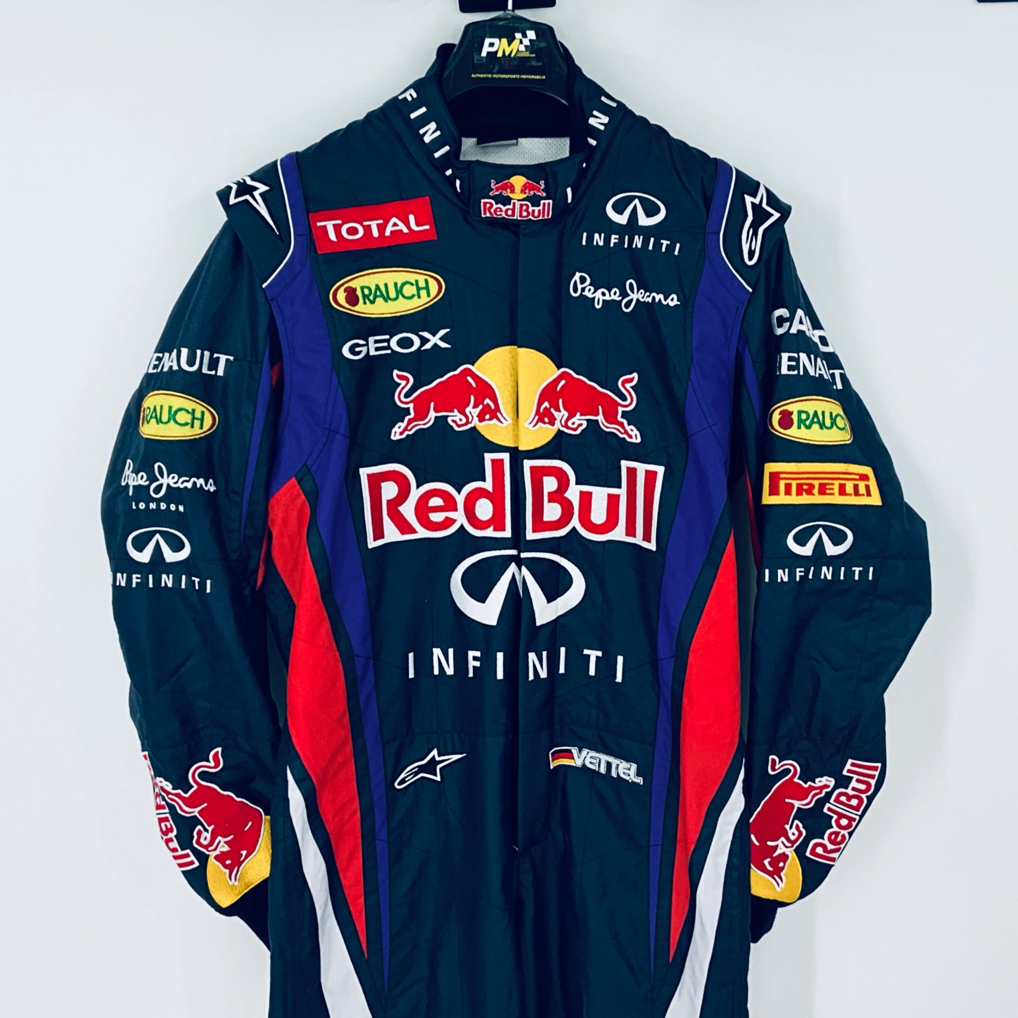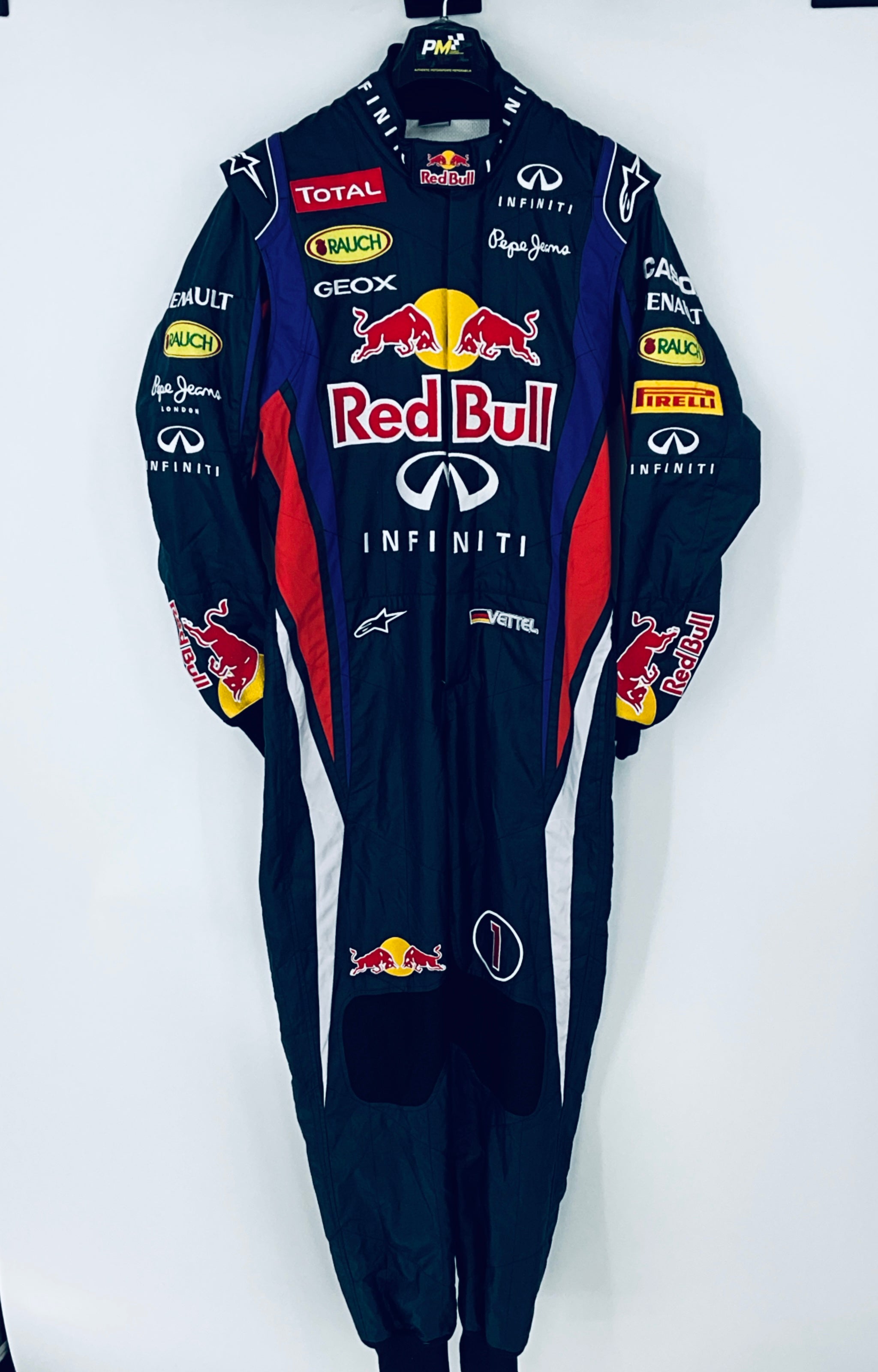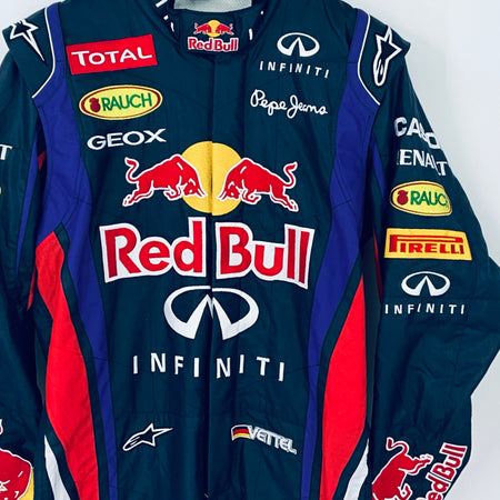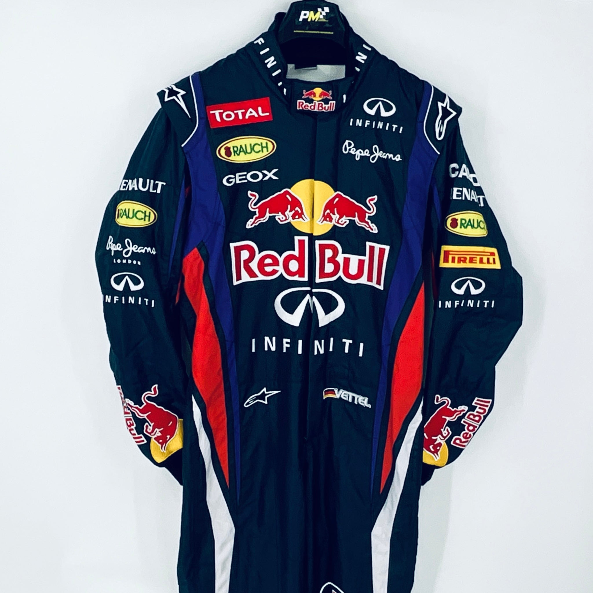 Own a piece of Formula 1 history from Sebastian Vettel's legendary 2013 season. This Red Bull Racing promotional suit from the year Vettel claimed his fourth consecutive World Championship, dominating the grid with 13 victories and an extraordinary nine-race winning streak. Crafted for high-profile team events, media appearances, and sponsor engagements, where full FIA homologated suits are not required making it more comfortable for the driver this authentic promo suit carries the prestige of one of motorsport's greatest achievements. A must-have for serious F1 collectors seeking tangible connection to an era that redefined championship excellence.