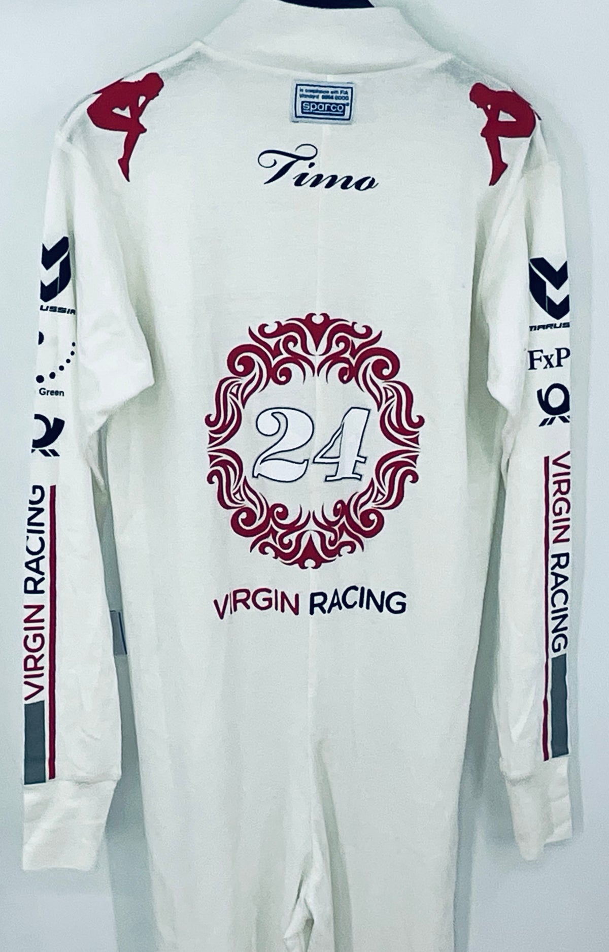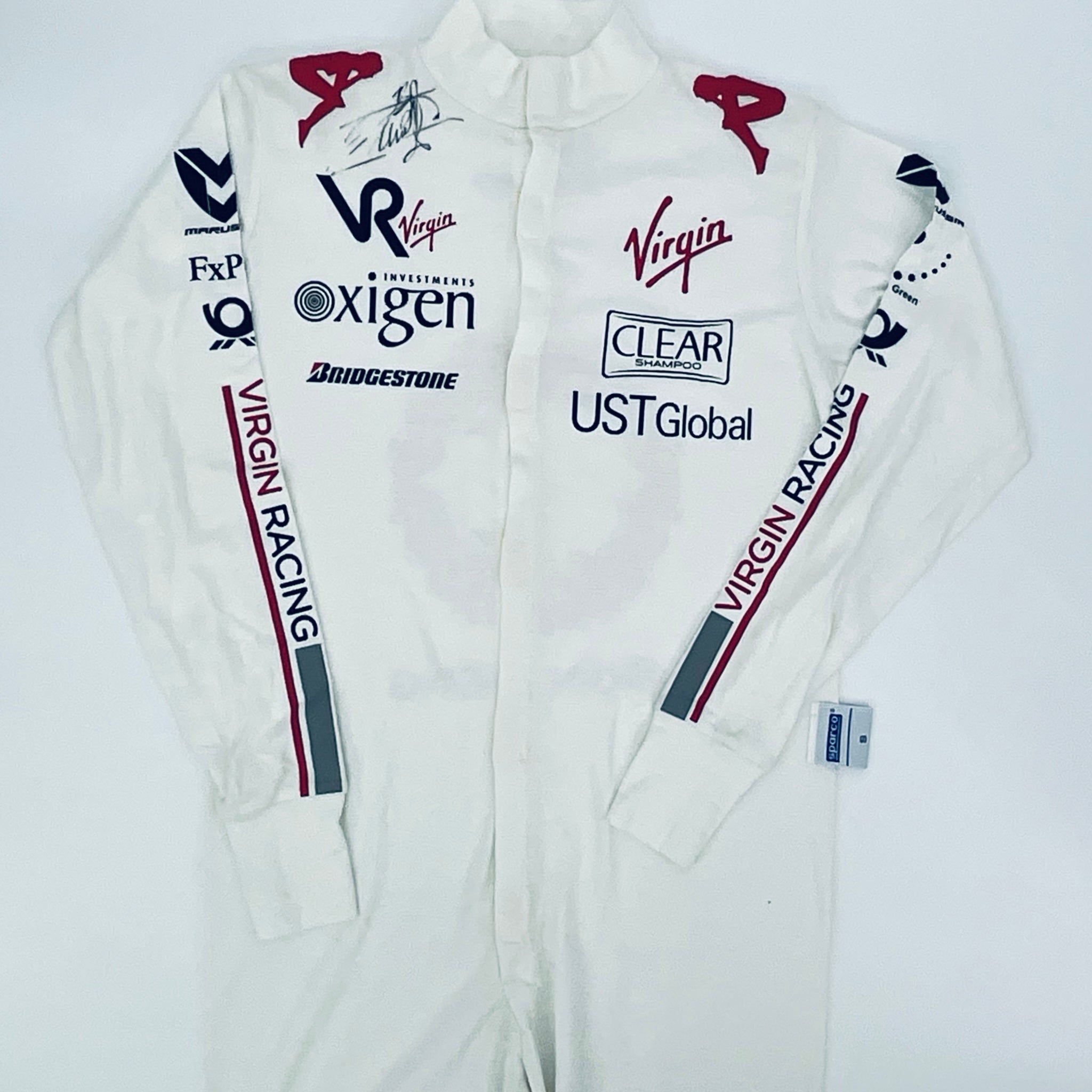 Authentic Timo Glock Hand Signed 2010 Virgin Racing F1 Team Race Used Full Length Nomex Under Suit